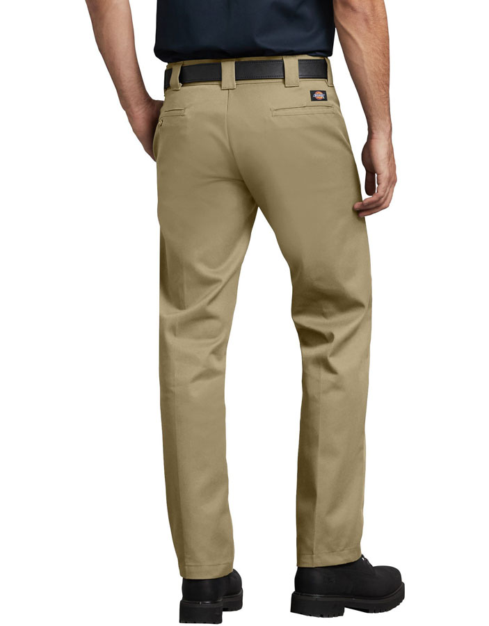 This flat-front pant sits below the waist and has a slim fit through the seat and thigh with a straight leg. Made with a crisp, wrinkle-resistant poly/cotton twill work cloth, it’s woven for durability and longevity and This flat-front pant sits below the waist and has a slim fit through the seat and thigh with a straight leg. Made with a crisp, wrinkle-resistant poly/cotton twill work cloth, it’s woven for durability and longevity and has a stain-release finish to prevent stains from setting in. This pant has staying power with a 2-piece work pant waistband and our signature tunnel belt loops providing enhanced support for belts.