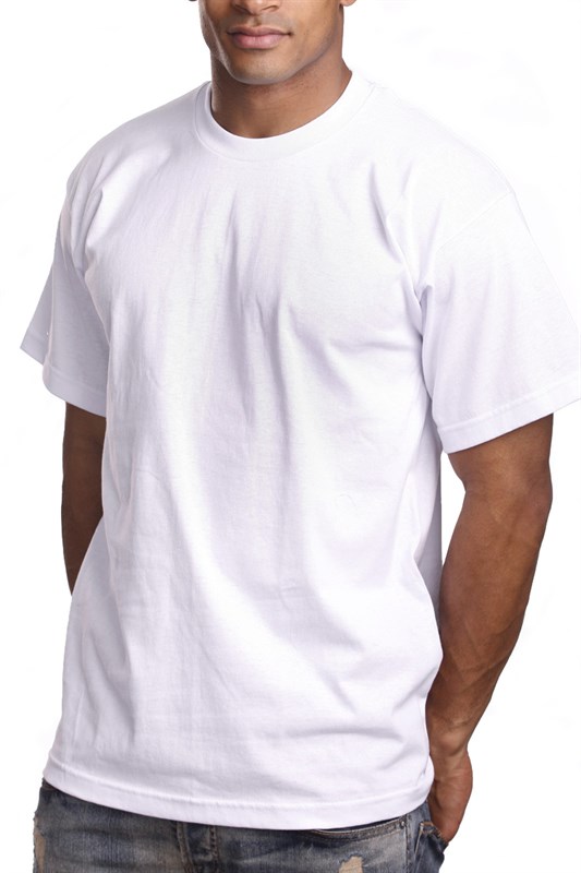Pro 5 Super Heavy T-shirt Short Sleeve White. 100% US Cotton. Neck rib has lycra for stretch and shape retention. Tight fitting neck.